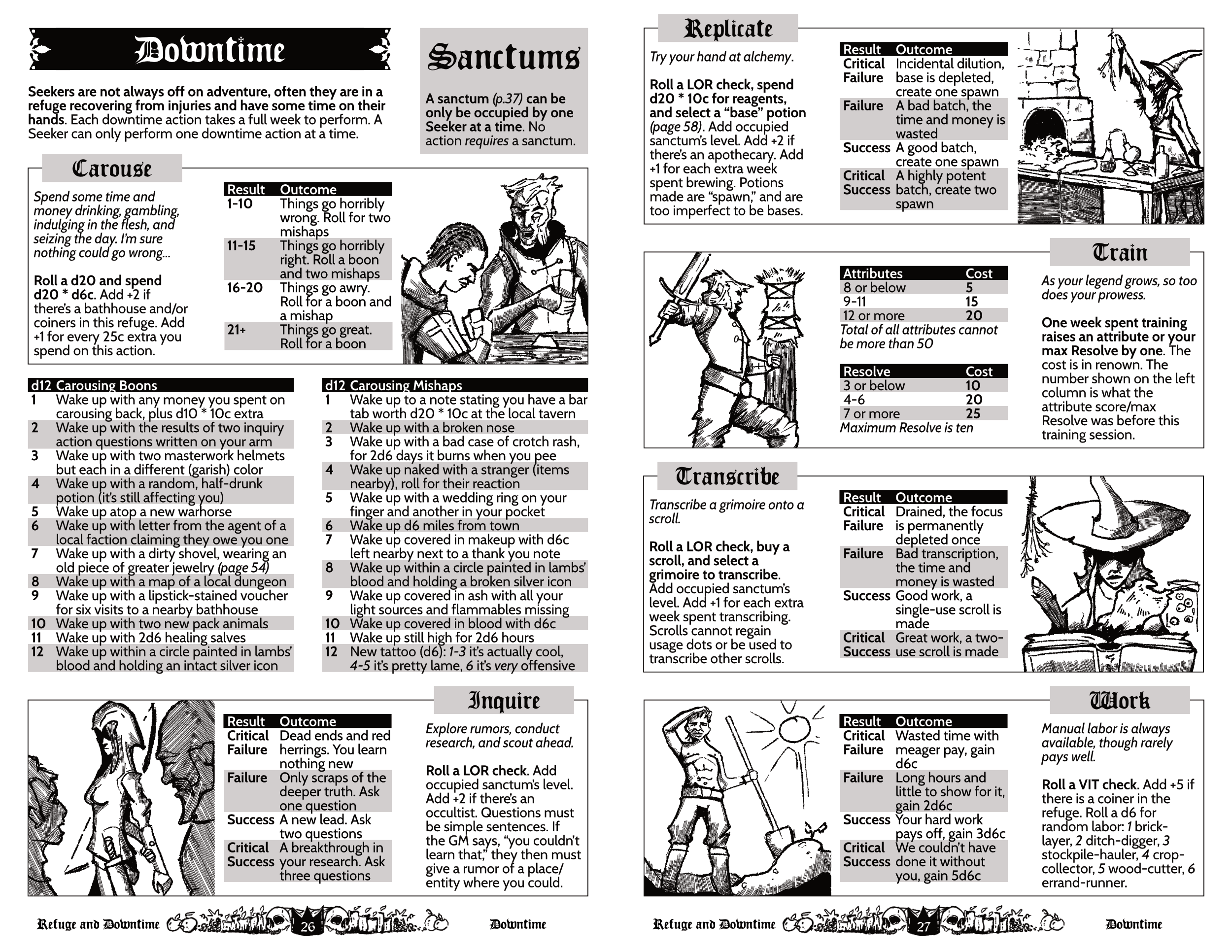 If you play Solo, I’d recommend making a party of at least three characters. I’m currently writing up rules for randomly generating dungeons from an explorer-side view instead of a GM-side view, it should be no more than a page or two.